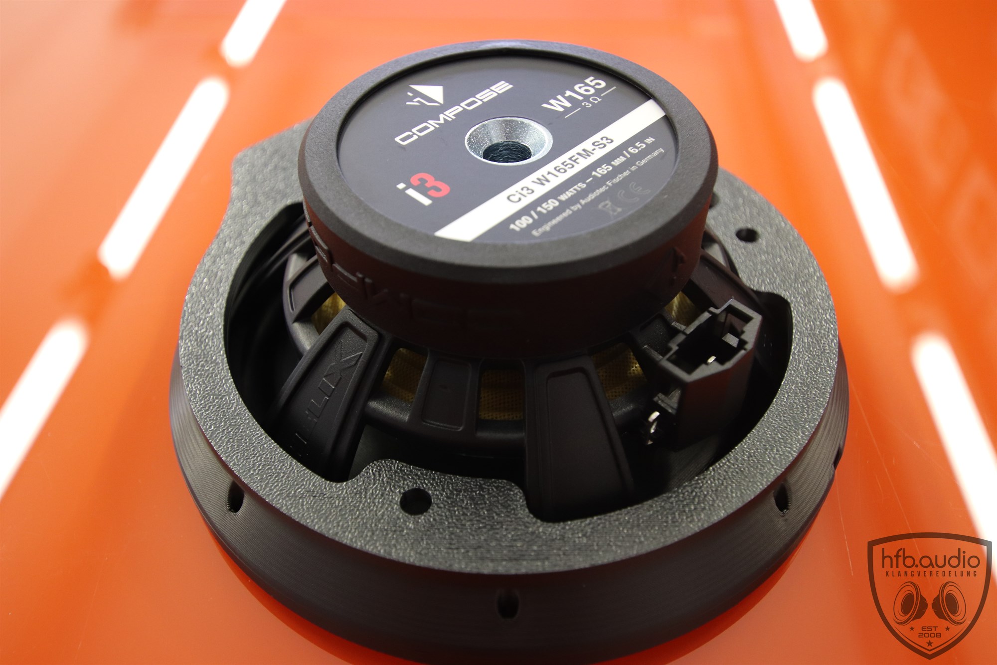 - Kompatibel mit den optional erhältlichen, fahrzeugspezifischen FlexMount165 Adapterringen, welche eine akustisch optimierte und professionelle Integration in der Original-Einbauposition des Fahrzeugs ermöglichen
