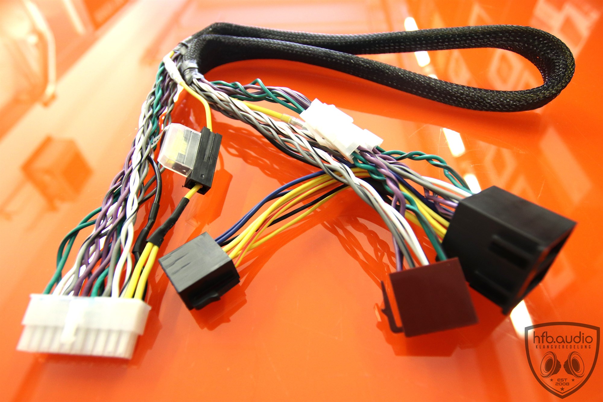 Bei Radios, die keine ISO-Anschlüsse besitzen, wird zusätzlich ein fahrzeugspezifischer ISO-Adapter benötigt (PP-AC Kabelsatz), welcher zwischen den ISO-Kabelbaum und das Radio angeschlossen wird.