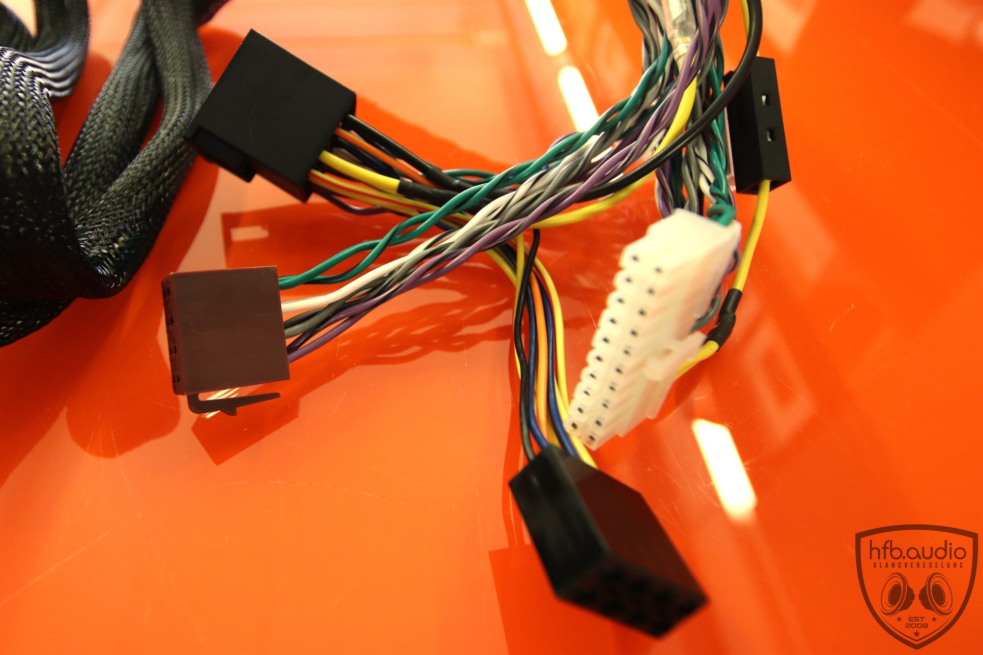 Bei Radios, die keine ISO-Anschlüsse besitzen, wird zusätzlich ein fahrzeugspezifischer ISO-Adapter benötigt (PP-AC Kabelsatz), welcher zwischen den ISO-Kabelbaum und das Radio angeschlossen wird.