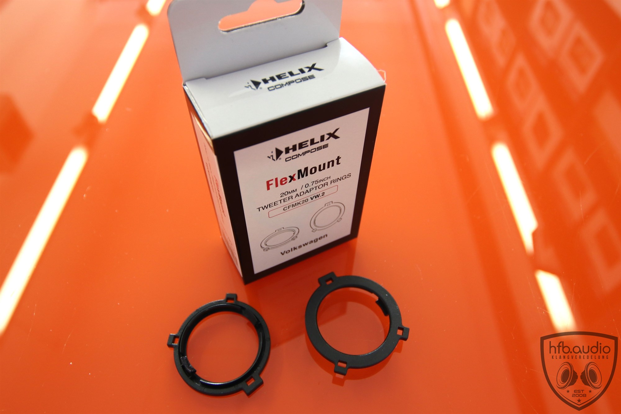 Bei FlexMount handelt es sich um ein, auf eigens entwickelten Adapterringen basierendes, Befestigungssystem. So wird mit Hilfe des Adapterrings aus deinem universellen 20 mm HELIX COMPOSE Hochtöner mit FlexMount20 Technologie ein fahrze...