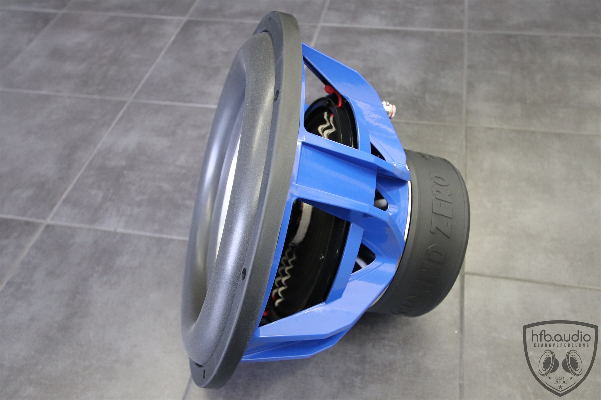 2500 Watt SPL 38 cm Langhub Subwoofer mit Aluminiummembran 38 cm Langhub Subwoofer Klippel® optimiert Aluminium Membran & Dustcap Langhub Sicke Massiver, blauer Aluminium-Gusskorb 75 mm Kupfer Runddraht-Schwingspule 4-la...