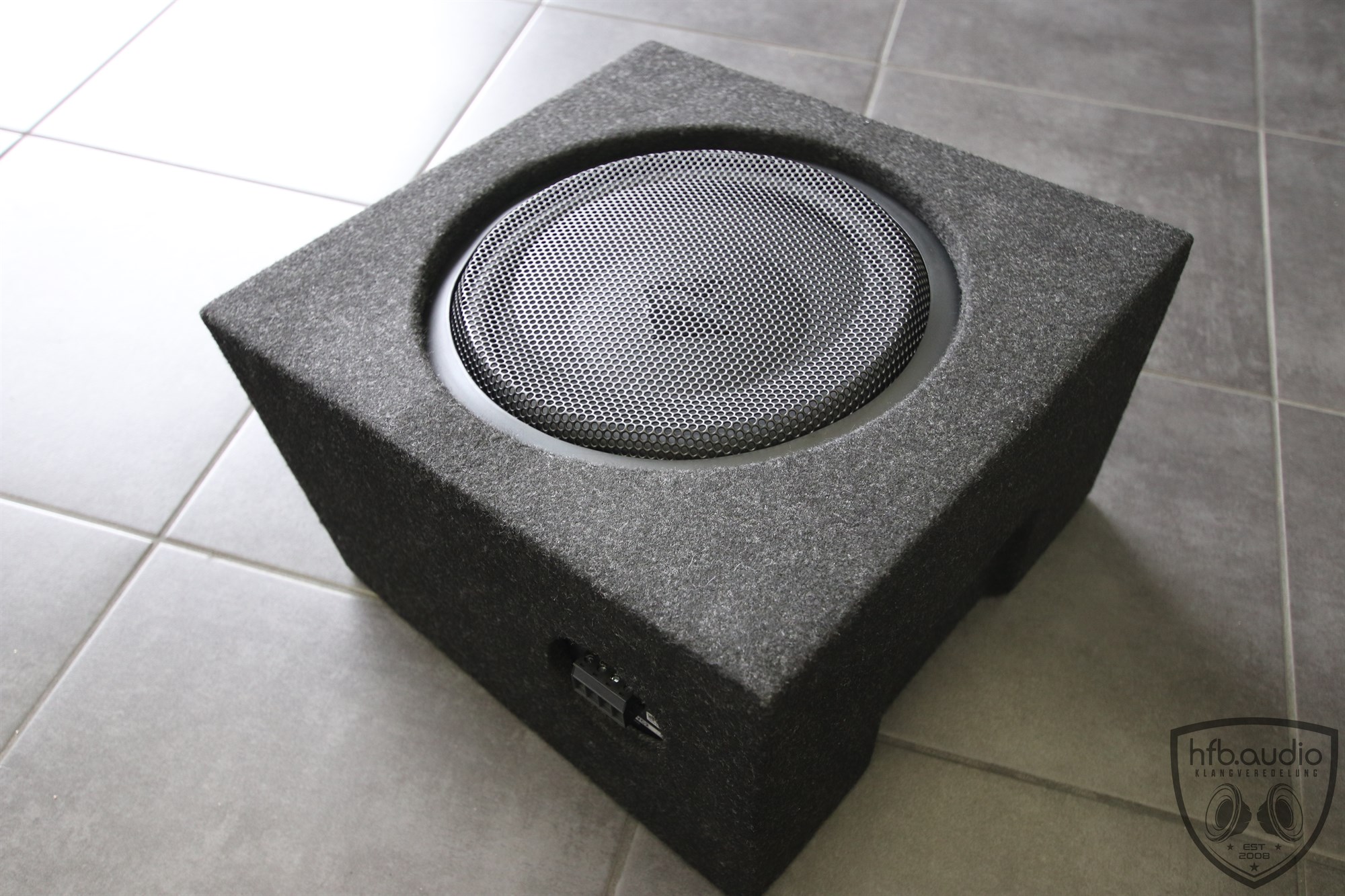 - Leistungsstarker Gehäusesubwoofer für den Einbau in die Sitzkonsole ohne Drehsitz des Volkswagen T6.1, T6 und T5