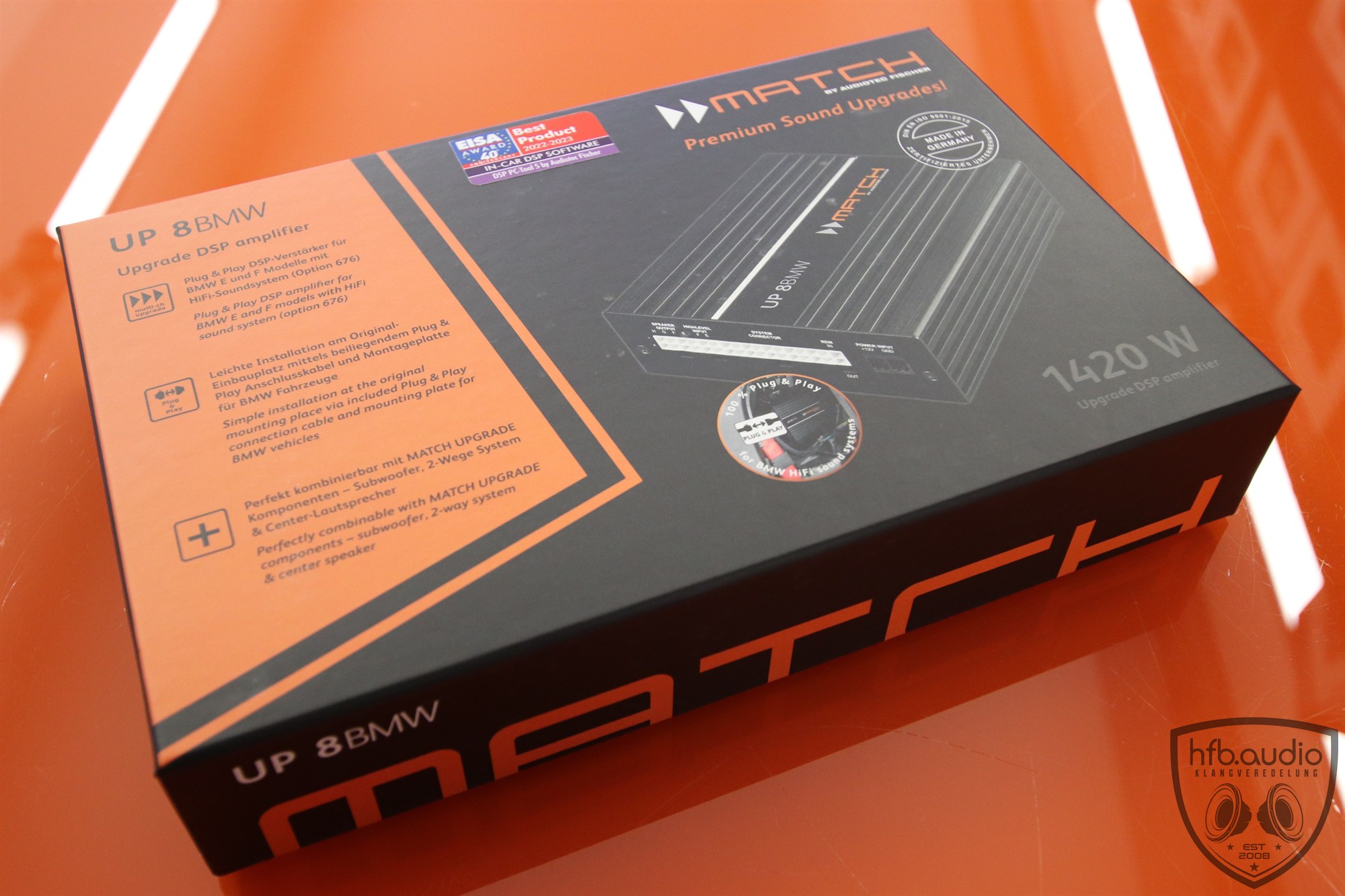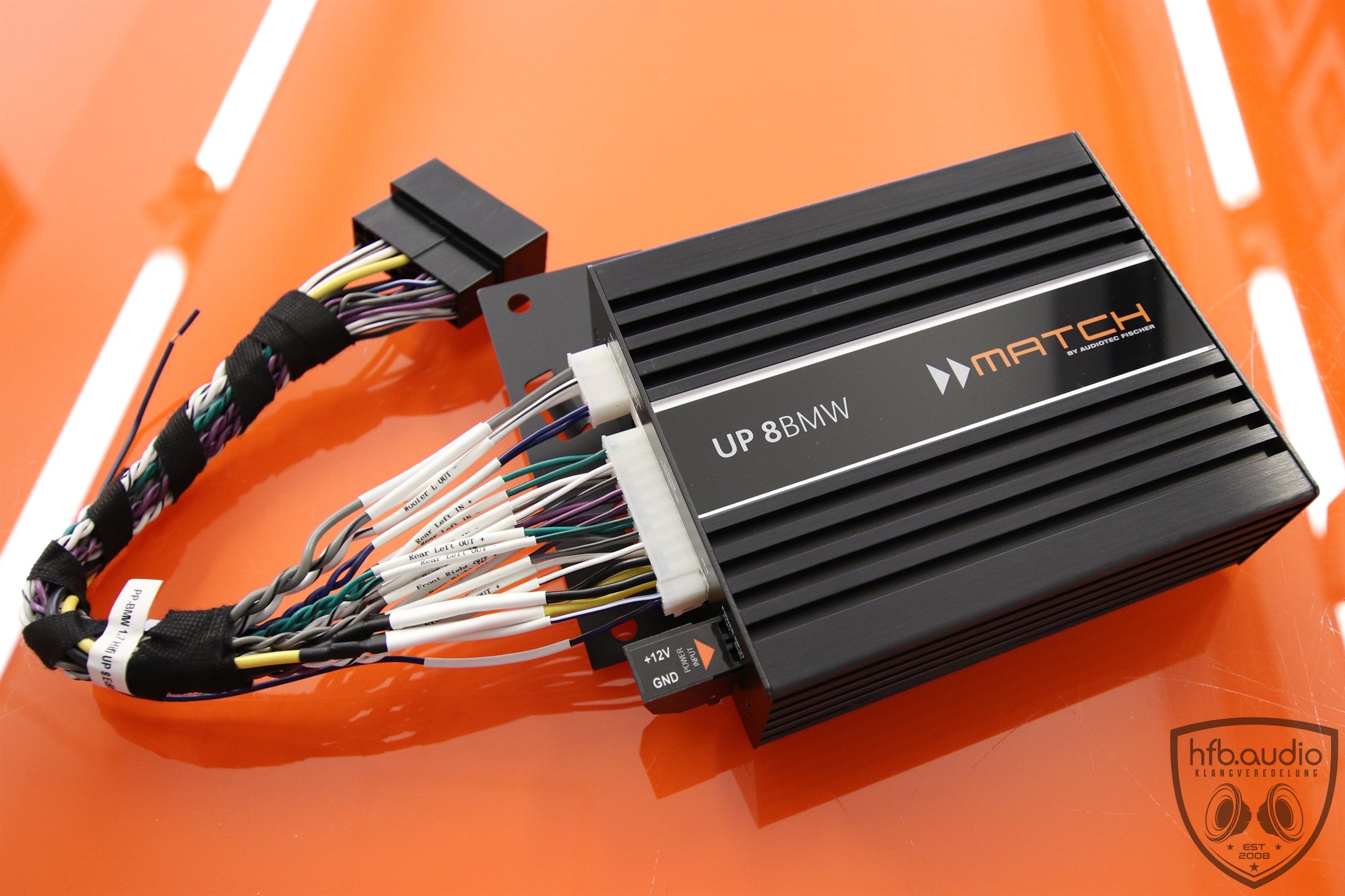 Die MATCH UP 8BMW ist das „M-Paket“ für dein BMW HiFi-Soundsystem! Dieser hocheffiziente 8-Kanal Plug & Play Upgrade-Verstärker mit integriertem 9-Kanal 64 Bit DSP wurde speziell für BMW E & F sowie G30 / G31 (vor Facelift) mit HiFi-Soundsystem (Option 676) entwickelt und sorgt für ein deutlich kraftvolleres und dynamisches Klangerlebnis bei gleichzeitig komfortabler Integration. Denn ein BMW benötigt Sound, welcher seiner Dynamik ebenbürtig ist!
